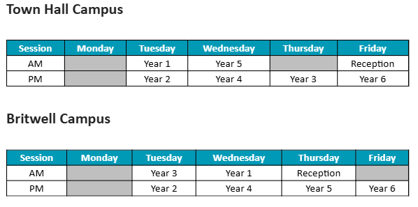 If you would like your child to join Breakfast Club at either campus you can just turn up on the day! Breakfast Club is free of charge and your child must be dropped off at the school hall, via the pedestrian entrance, between 8:00am and 8:20am. Please note there is no parking available for parents at either site for drop off and we are unable to take children before 8:00am or after 8:20am.